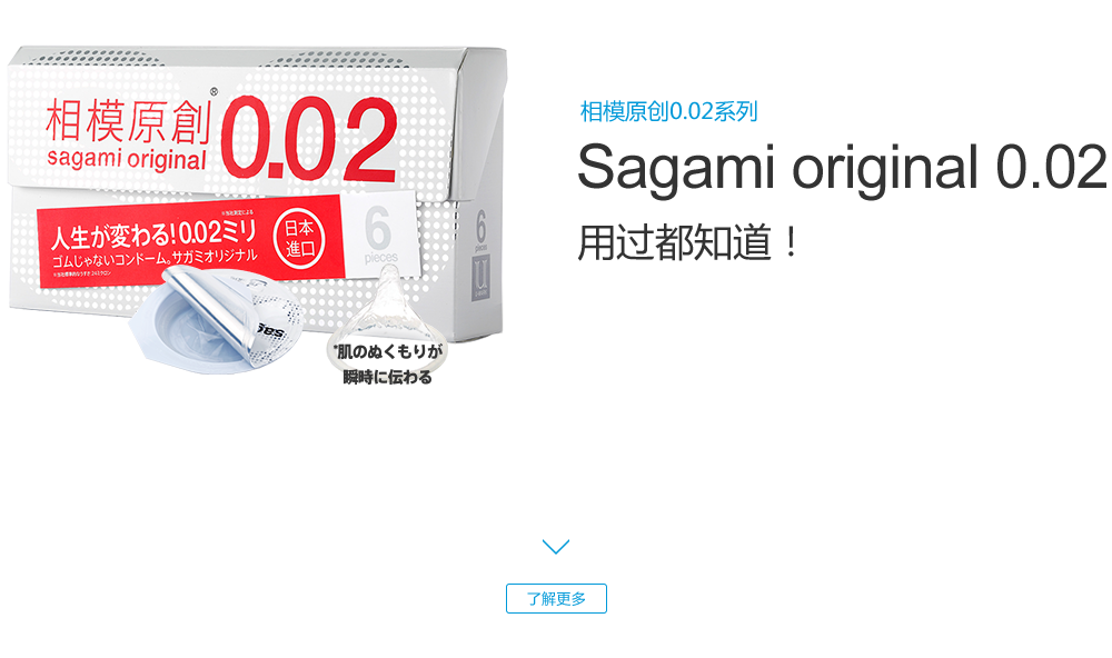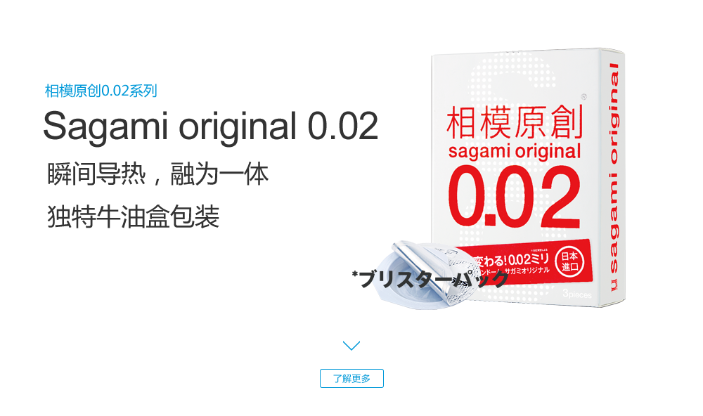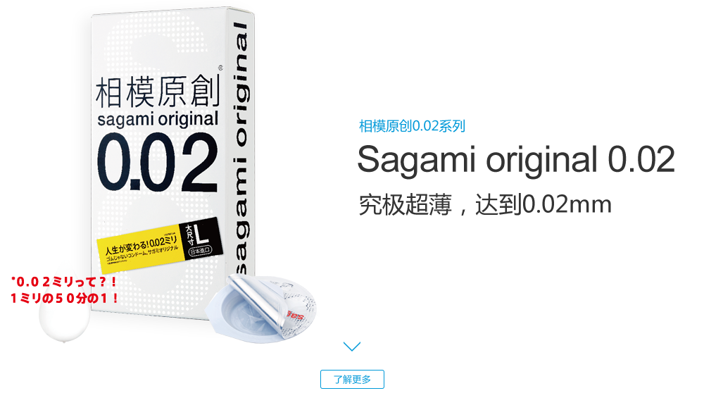 sagami original 0.02 (相模原創0.02系列), 是日本相模橡膠工業株式會社于1998年推出首次創新發明并向日本市場的一種以聚氨基甲酸酯 (高分子材料)為原料制成的非乳膠安全套, 厚度僅0.02mm, 是傳統的橡膠產品“厚度一半,強度三倍”, 并且擁有高導熱性能,讓產品使用體驗更加美妙!